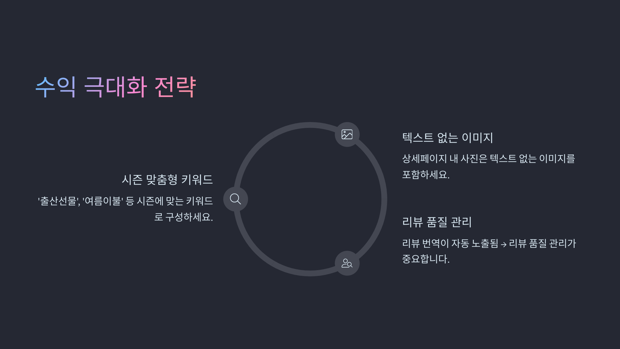 - ✔ 리뷰 번역이 자동 노출됨 → 리뷰 품질 관리 중요
