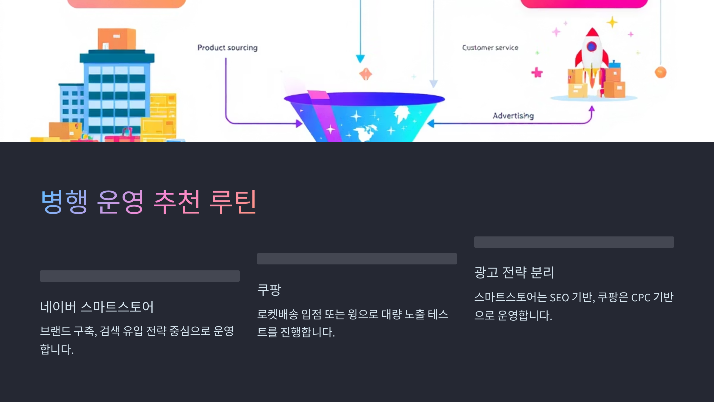 - ③ 광고 전략도 분리 운영 (스마트스토어는 SEO 기반 / 쿠팡은 CPC 기반)