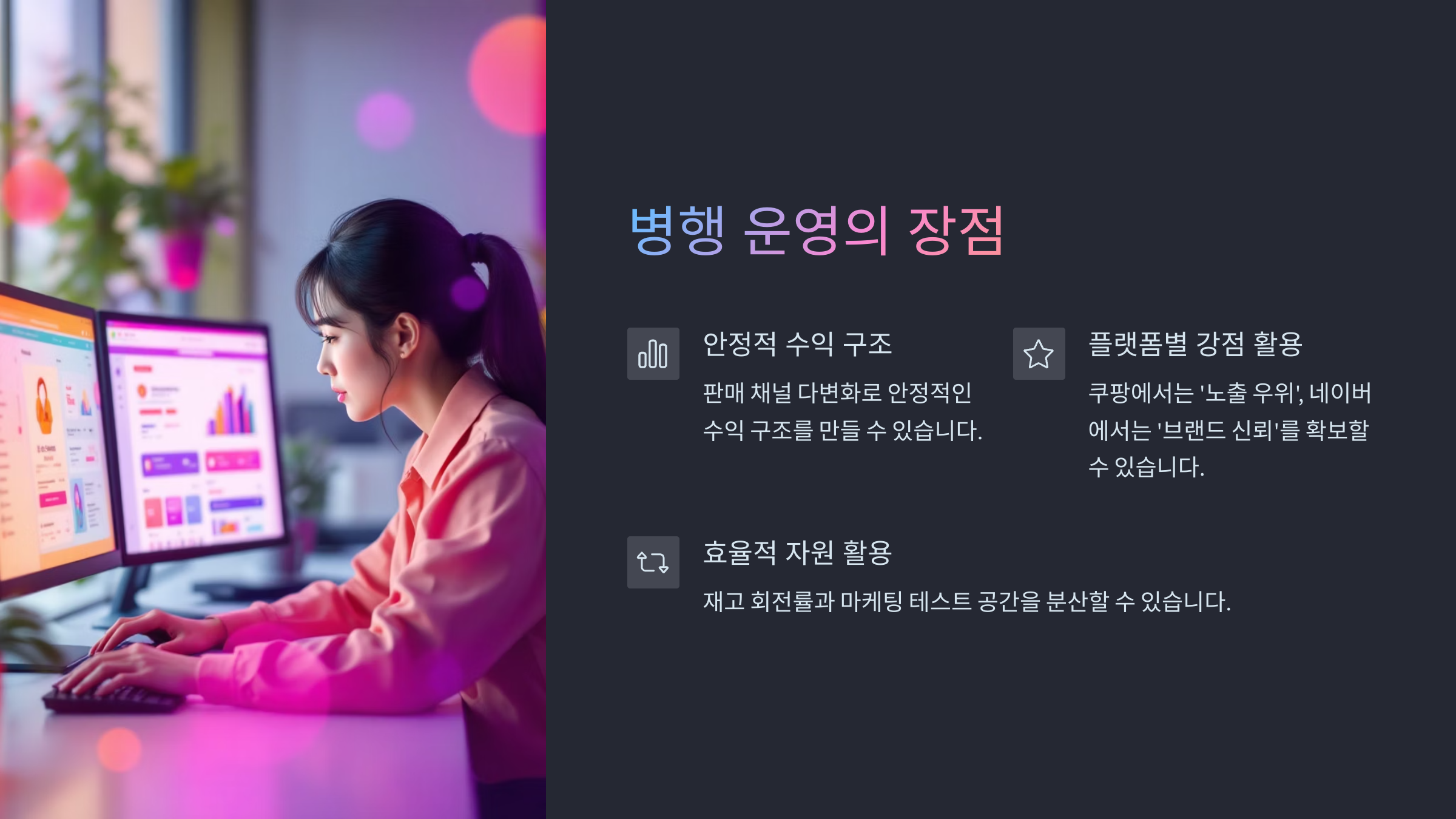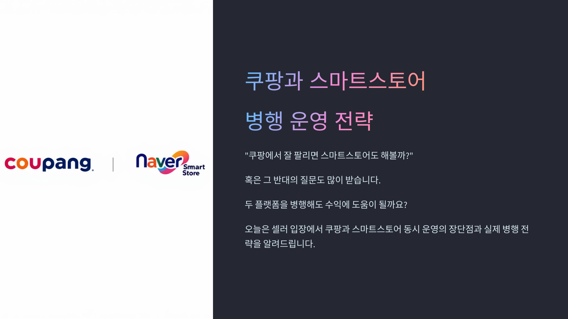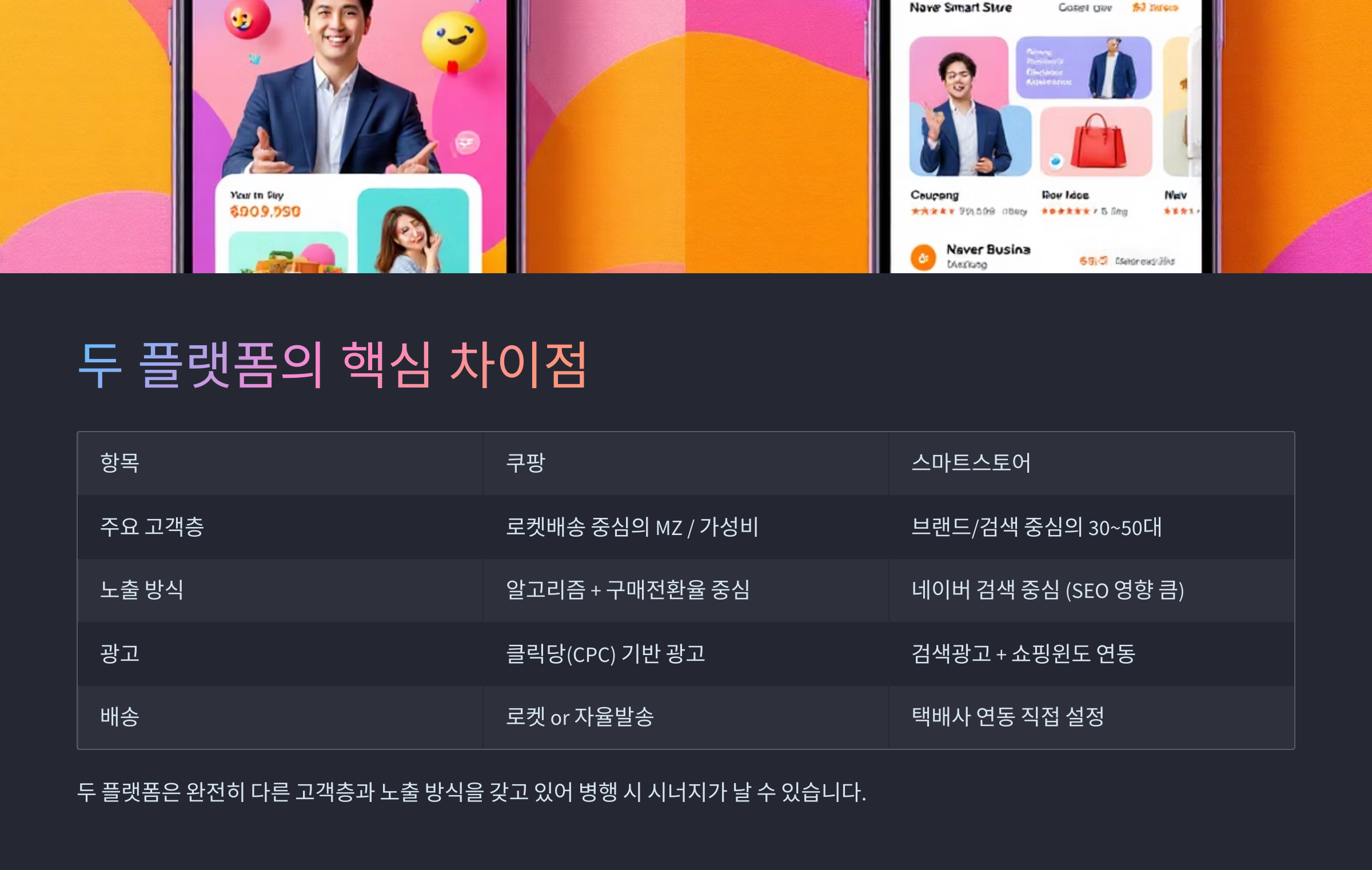 오늘은 셀러 입장에서 쿠팡과 스마트스토어를 동시에 운영할 때의 장단점과 실제 병행 운영 전략을 알려드릴게요.
