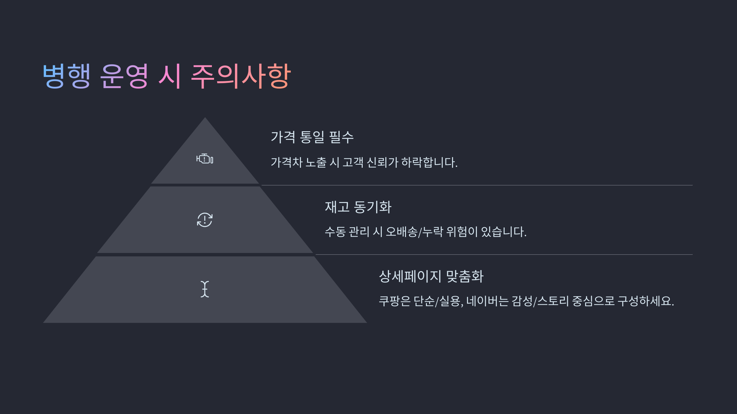 - ❗ 가격 통일 필수 – 가격차 노출 시 고객 신뢰 하락