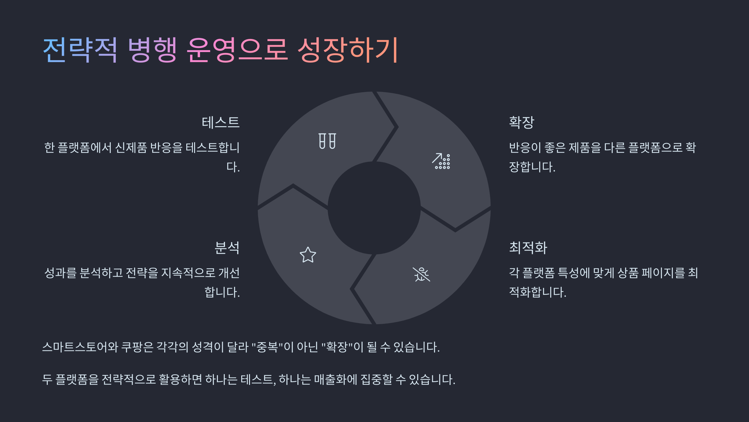 스마트스토어와 쿠팡은 각각의 성격이 다르기 때문에 병행 운영이 “중복”이 아니라 “확장”이 될 수 있습니다.