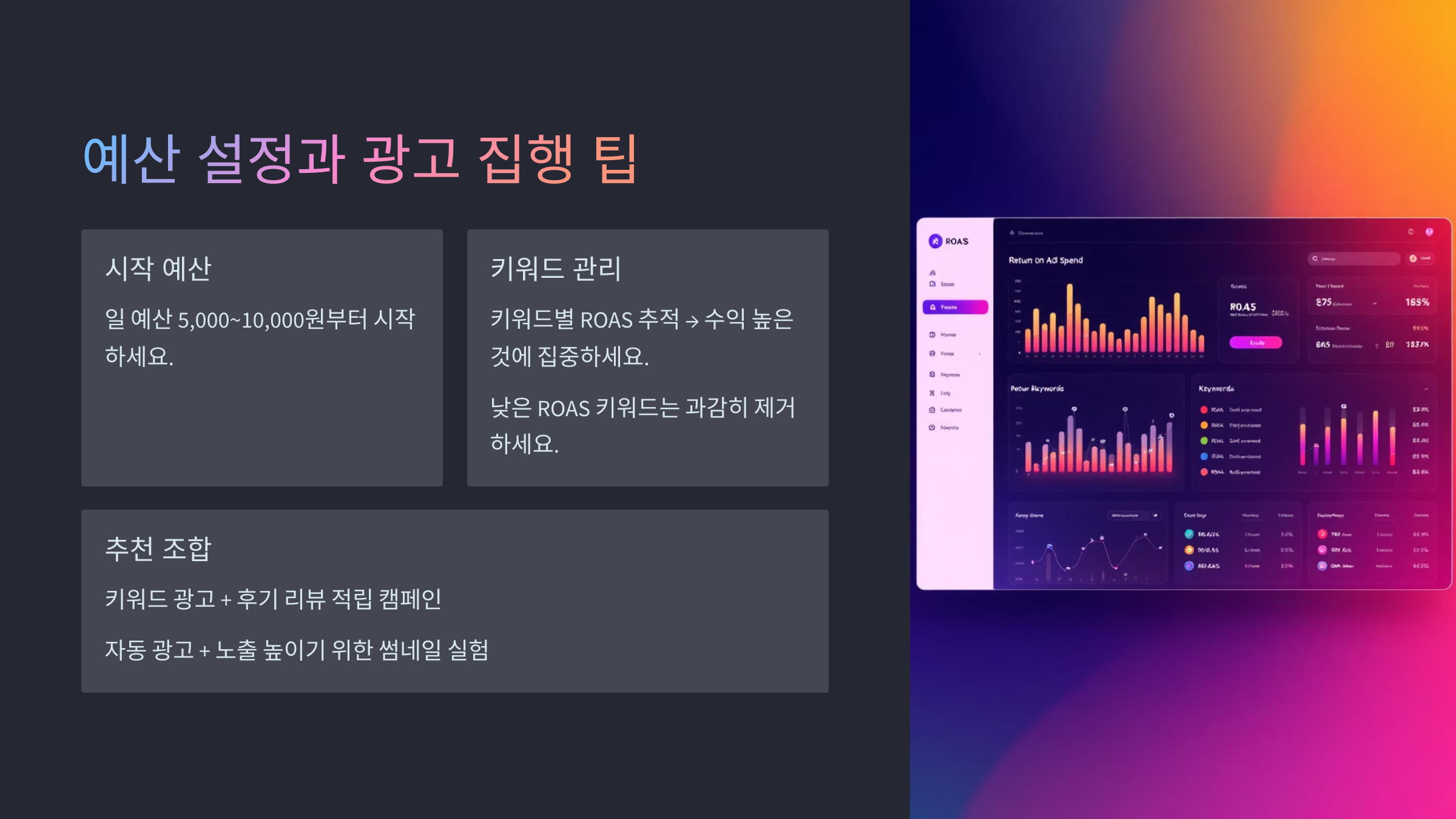 - ✔ 키워드별 ROAS 추적 → 수익 높은 것에 집중