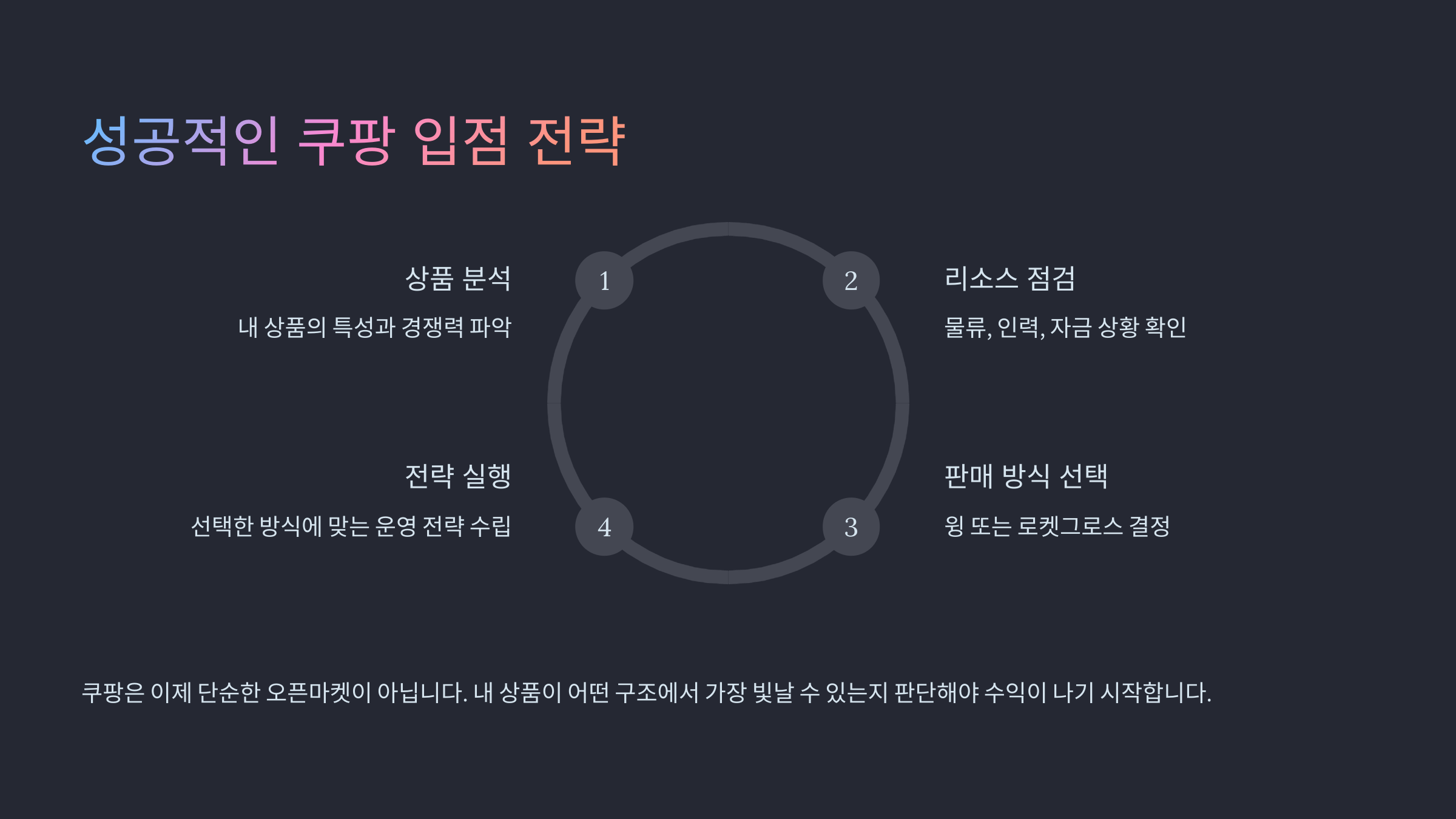 쿠팡은 이제 단순한 오픈마켓이 아닙니다. 내 상품이 어떤 구조에서 가장 빛날 수 있는지부터 판단해야 수익이 나기 시작합니다.