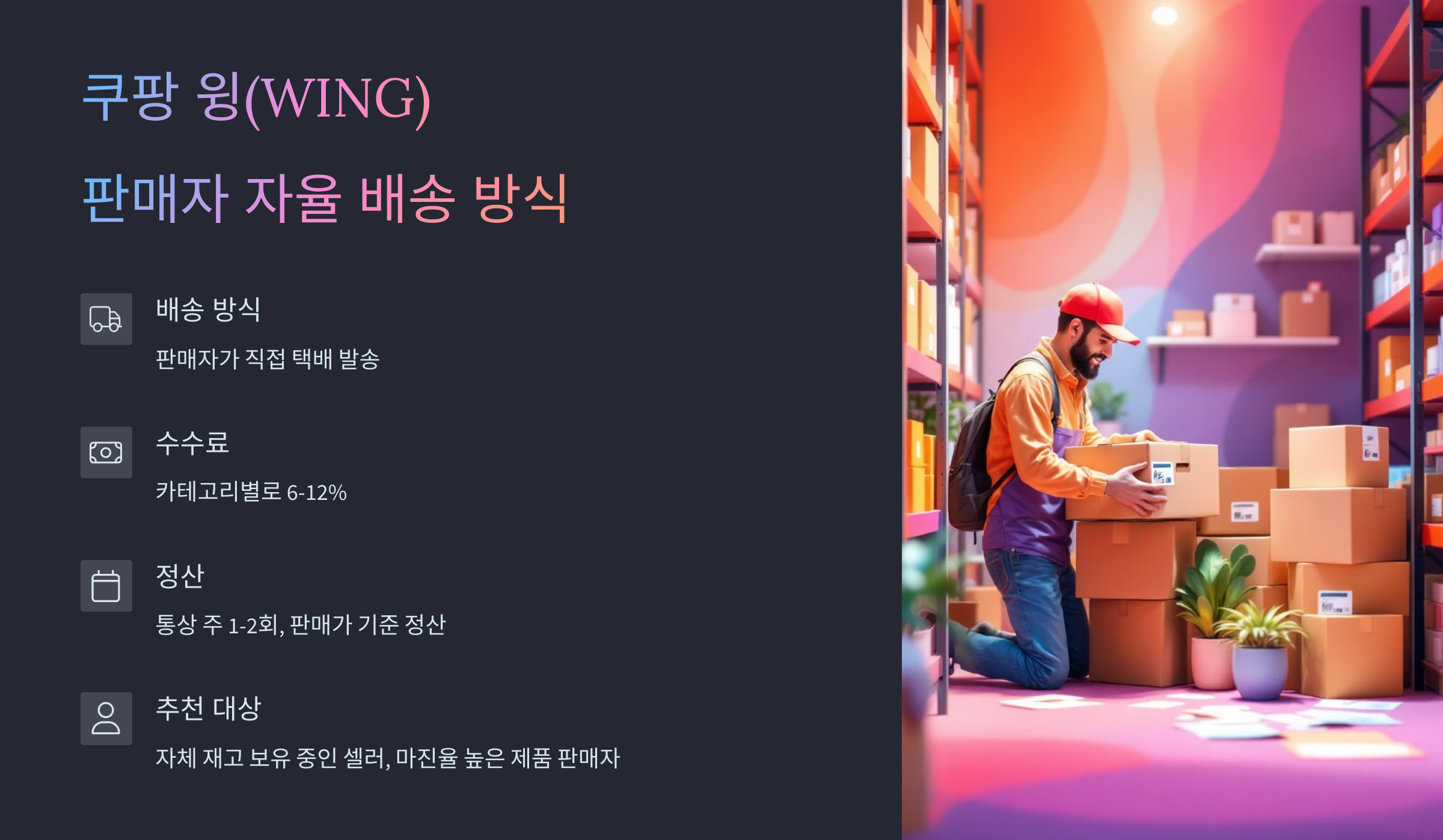 1. 쿠팡 윙(WING): 판매자 자율 배송 방식