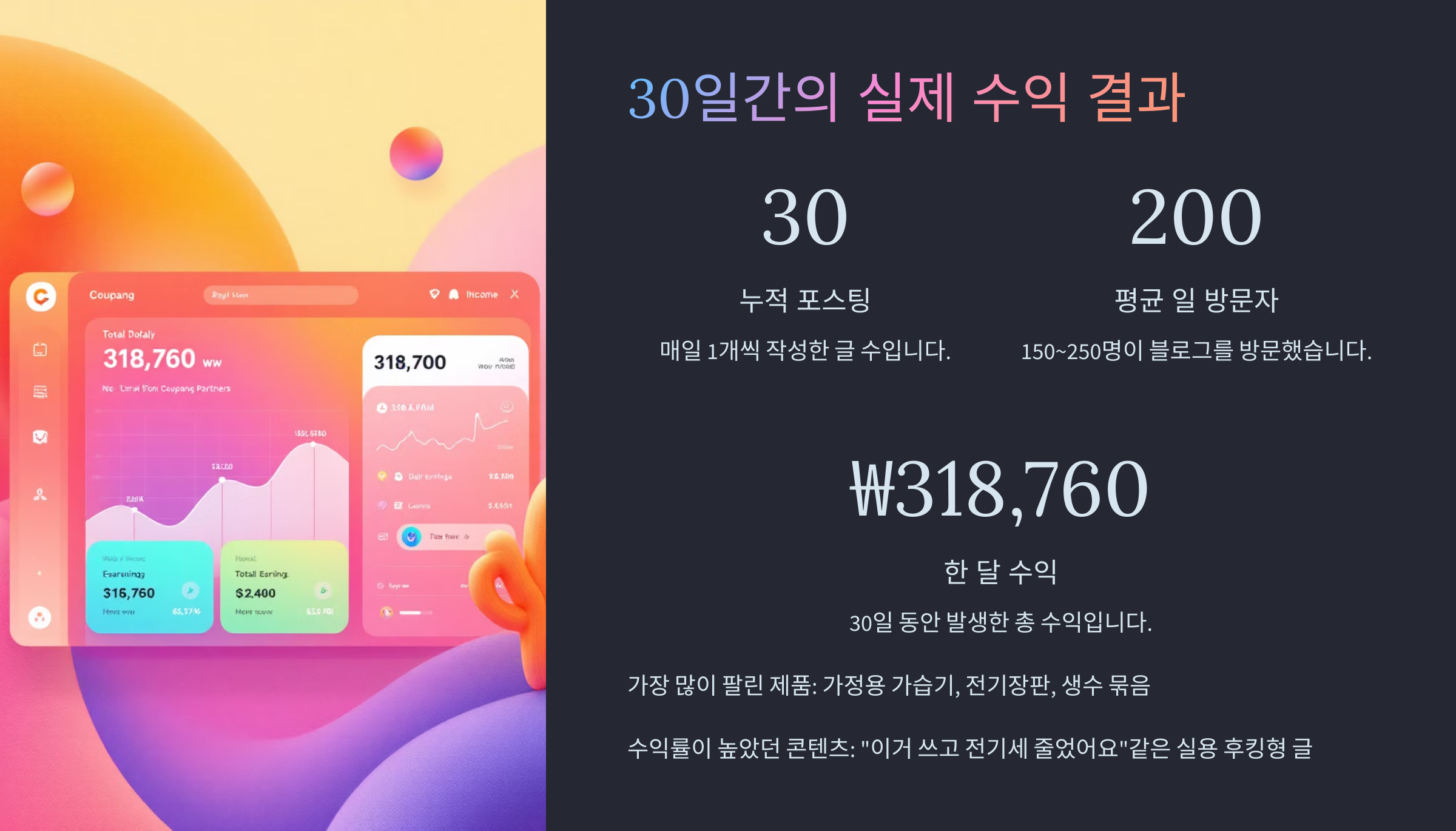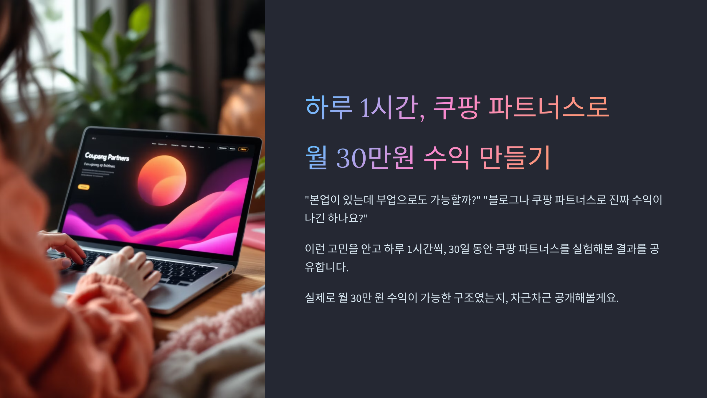 이런 고민을 안고 하루 1시간씩, 30일 동안 쿠팡 파트너스를 실험해본 결과를 공유합니다.